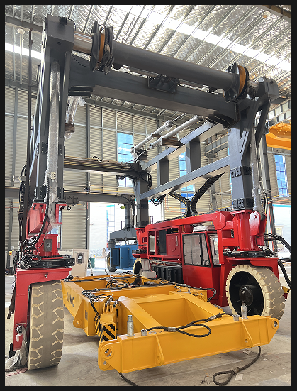 走进生产车间,技术人员正紧锣密鼓地进行轮胎式跨运车的调试工作,确保设备按时交付。